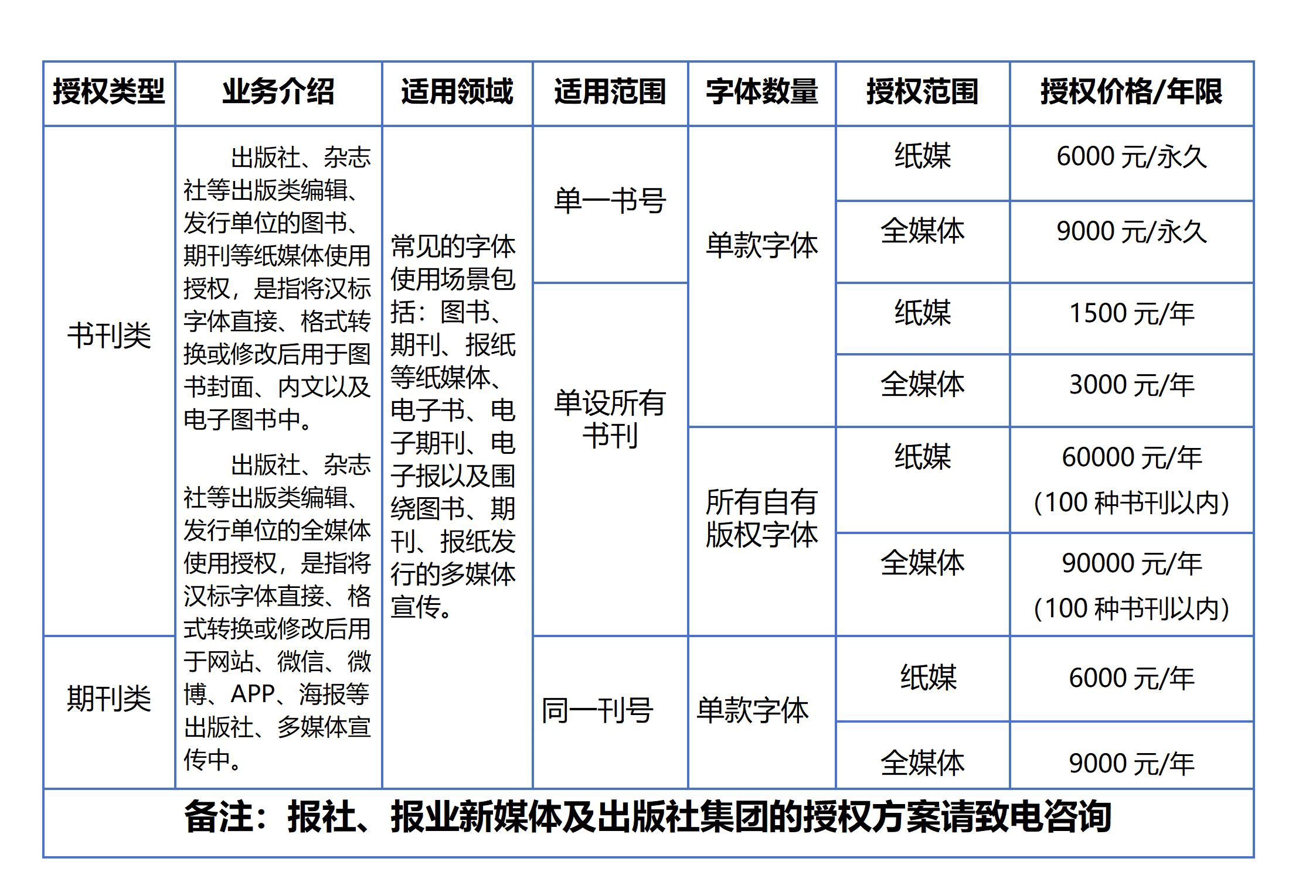 | 影视作品字幕 | 影视广告设计用字(包括:电视广告、电影广告、短视频广告) 影视剧、电视节目、网络视频等片头和字幕首映推广海报/宣传片用字,只限单款影视作品。 | |||