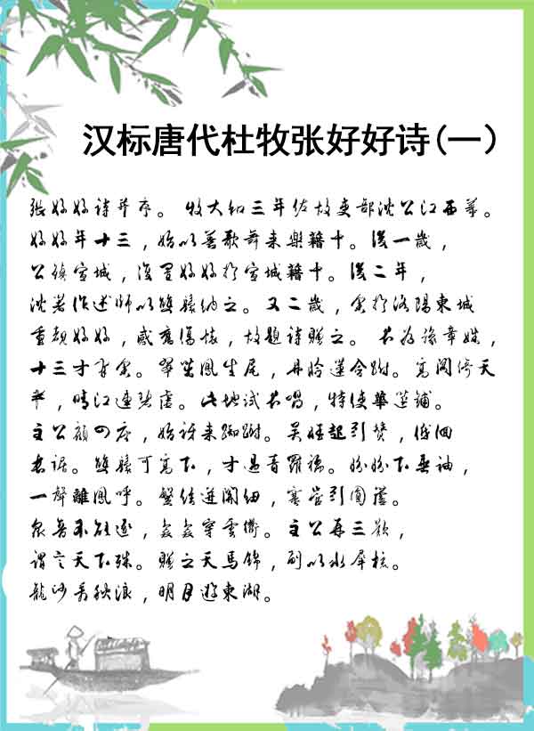 字体名称:汉标唐代杜牧张好好诗1