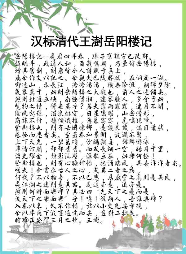 字体名称:汉标清代王澍岳阳楼记